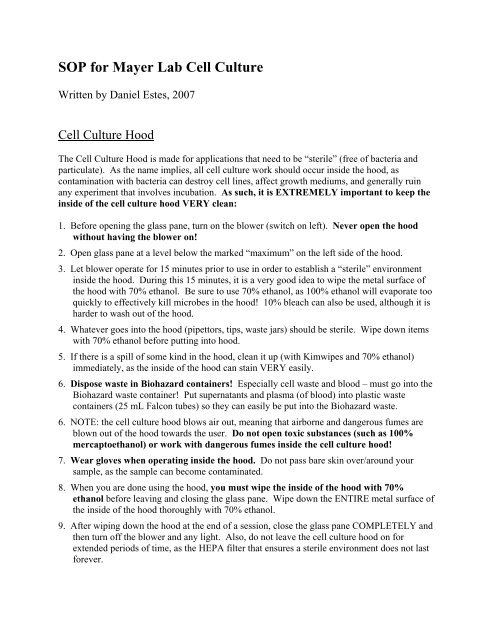 Sop For Mayer Lab Cell Culture