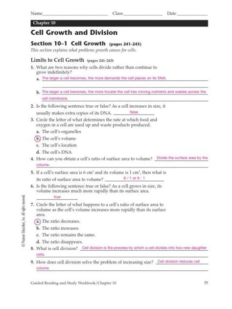 Cell Division Worksheet Answers Cell Structure Function